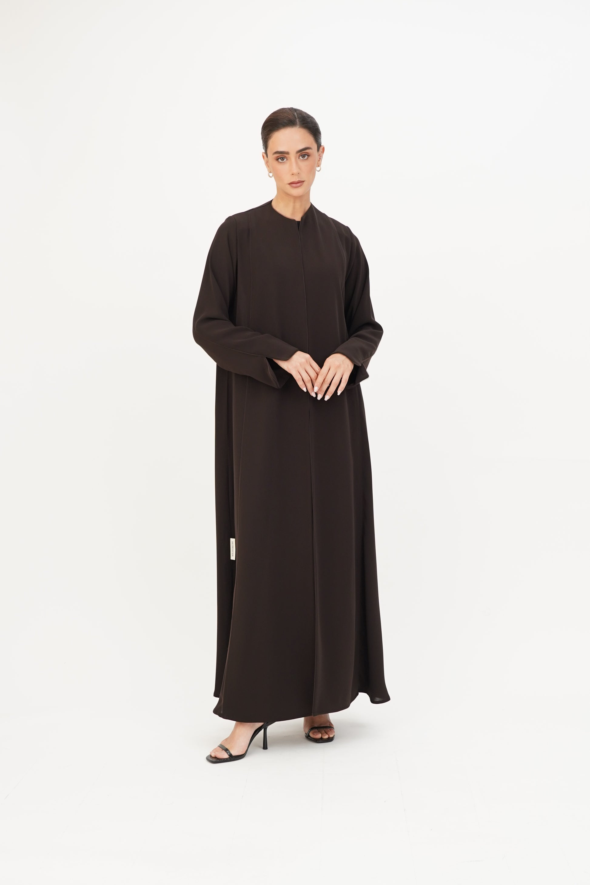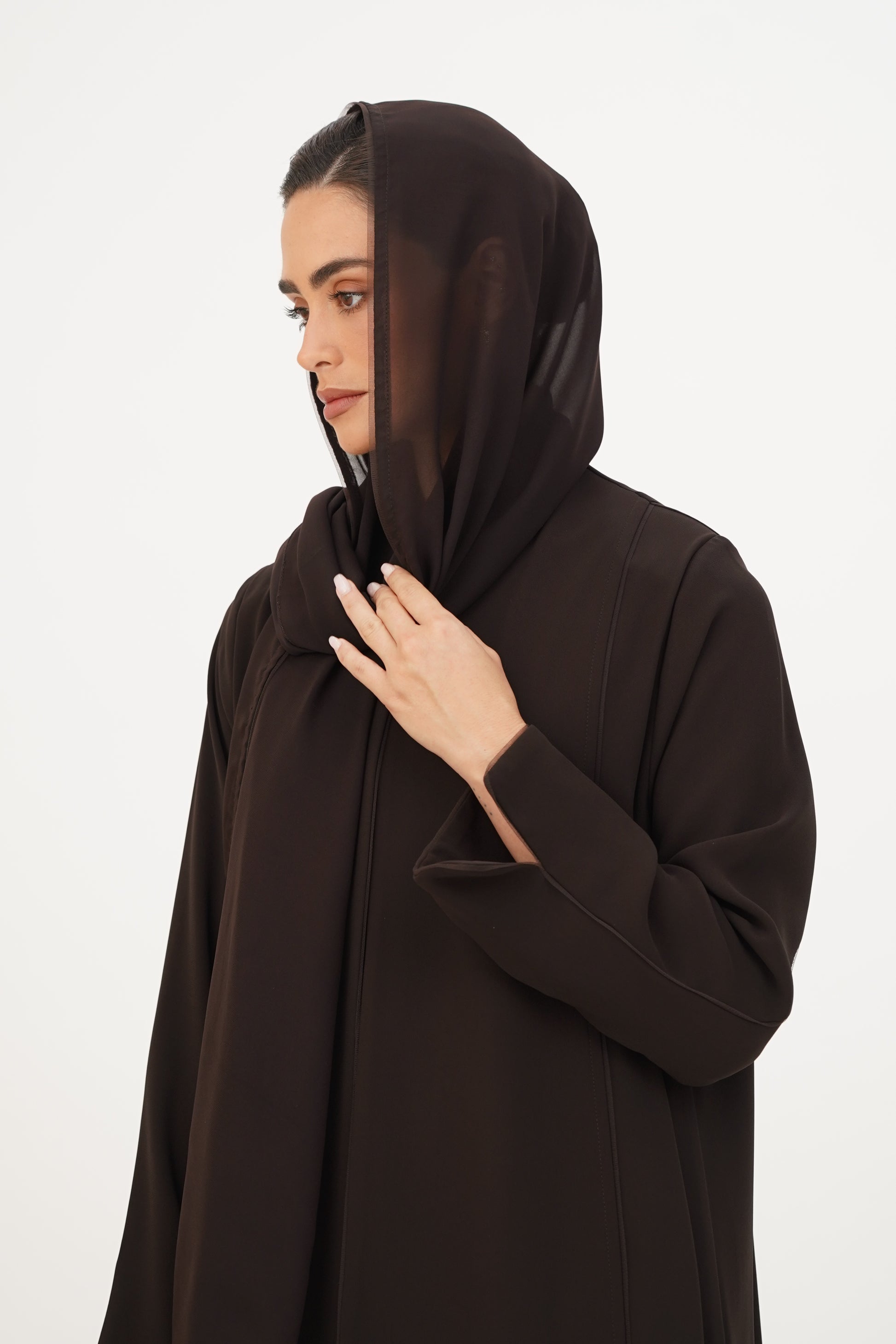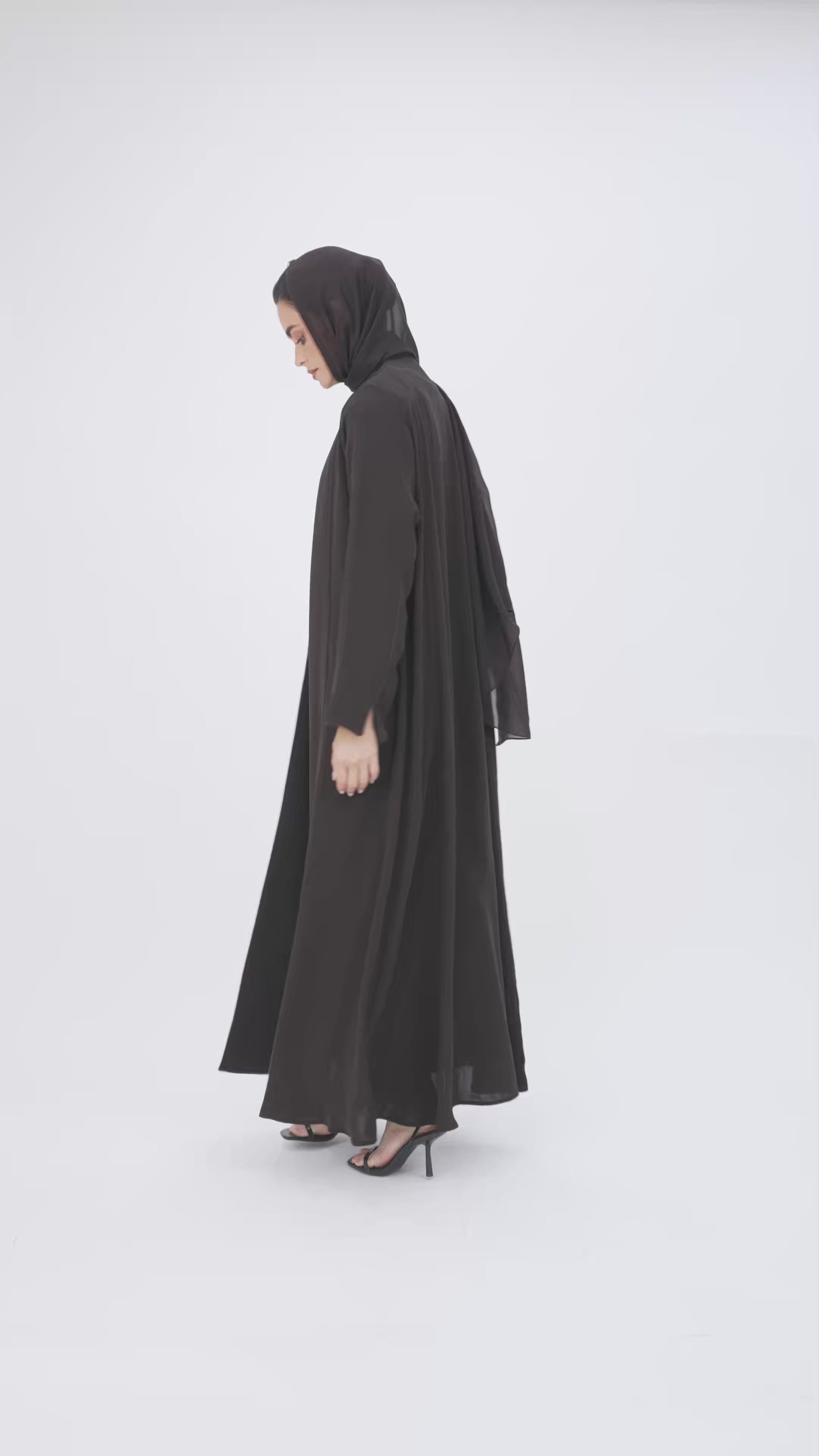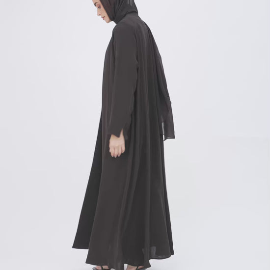 Abaya adorned with soft tulle on the edges, combining simplicity and elegance.