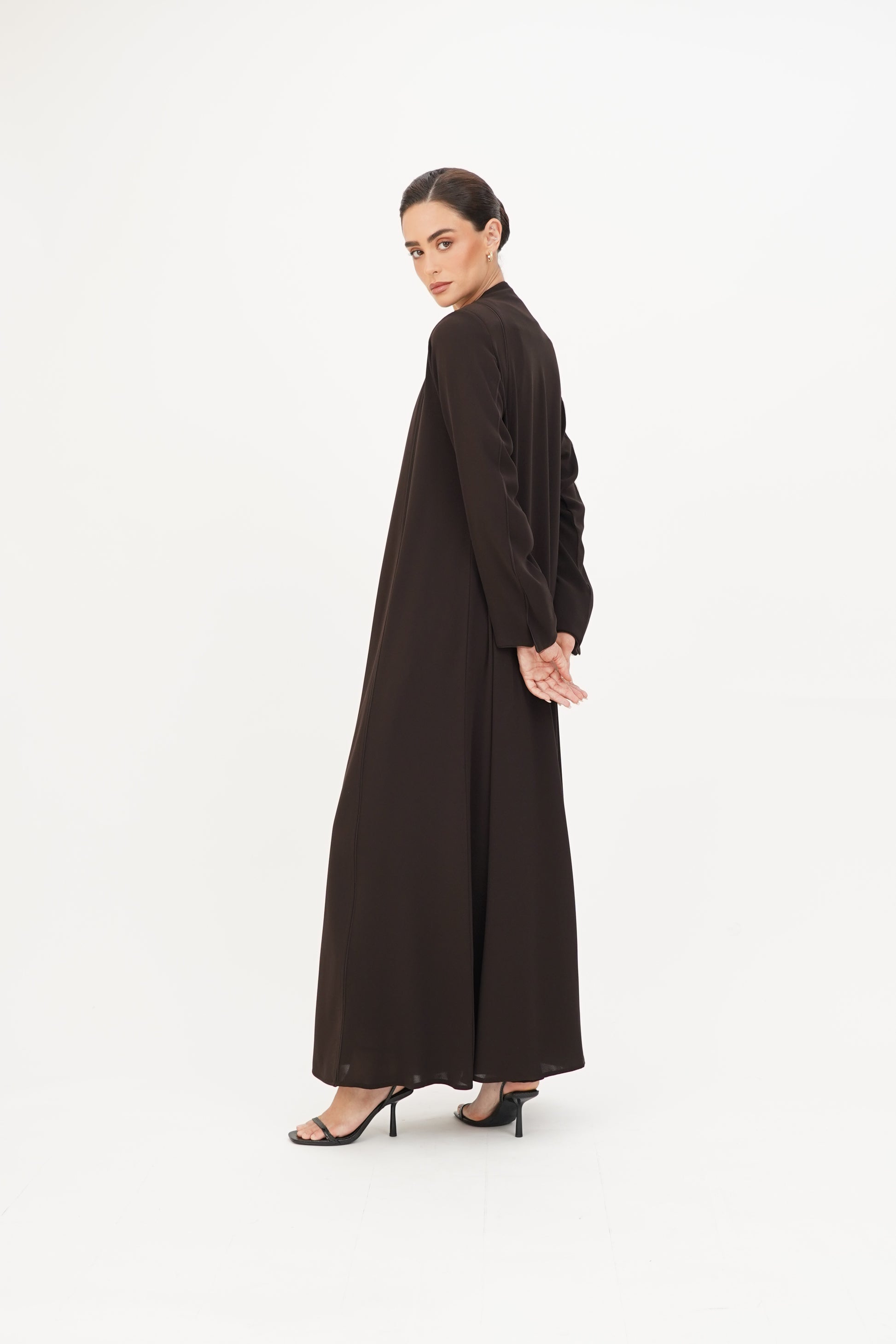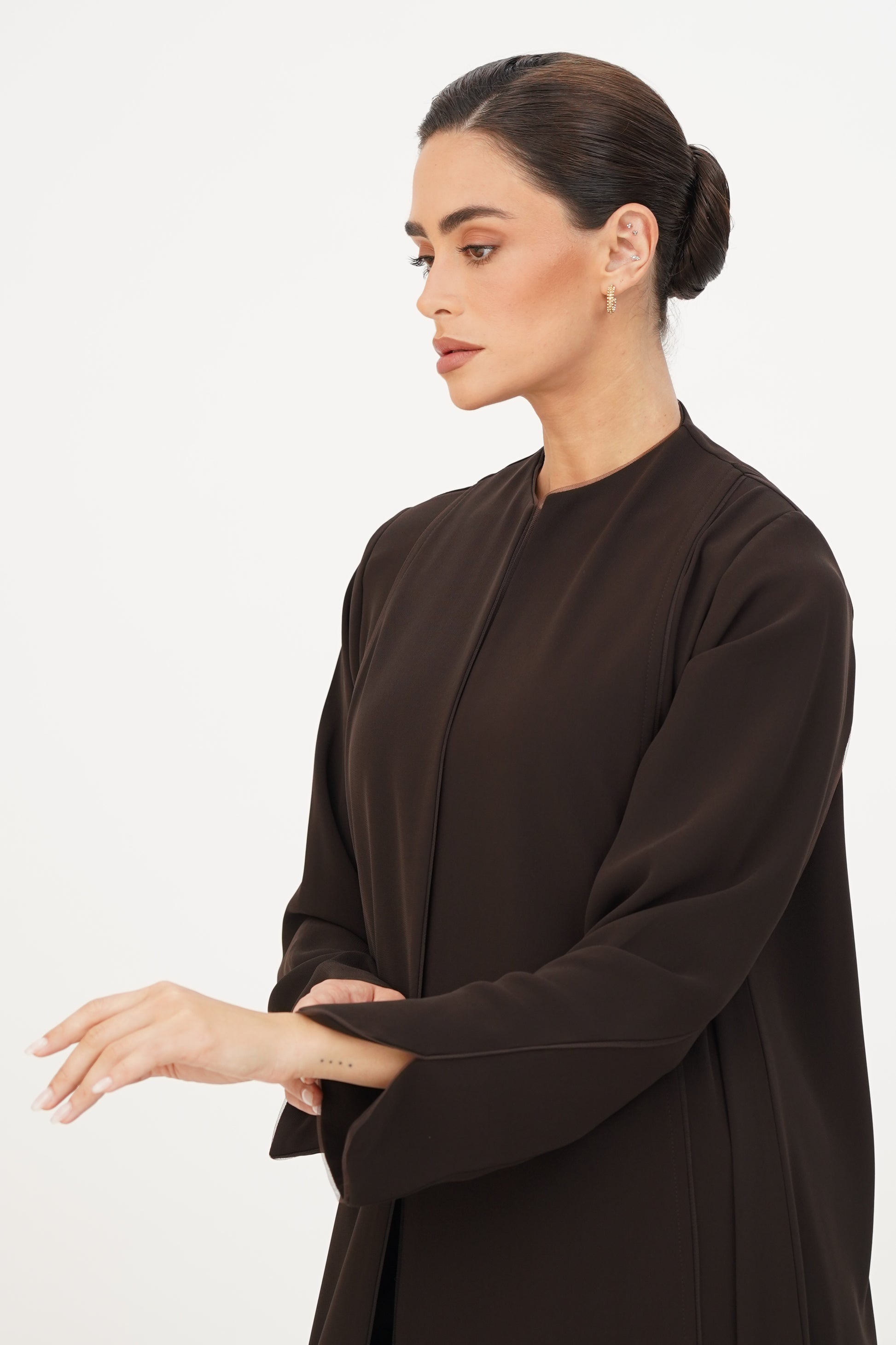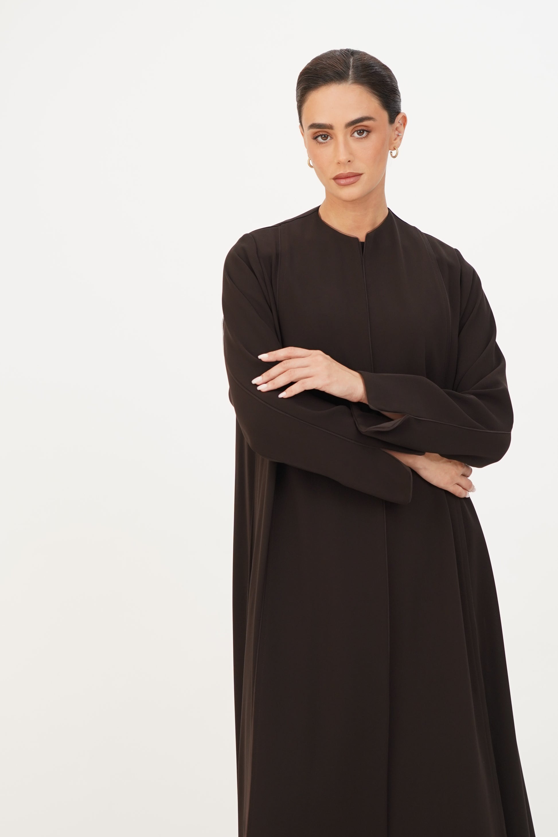 Abaya adorned with soft tulle on the edges, combining simplicity and elegance.